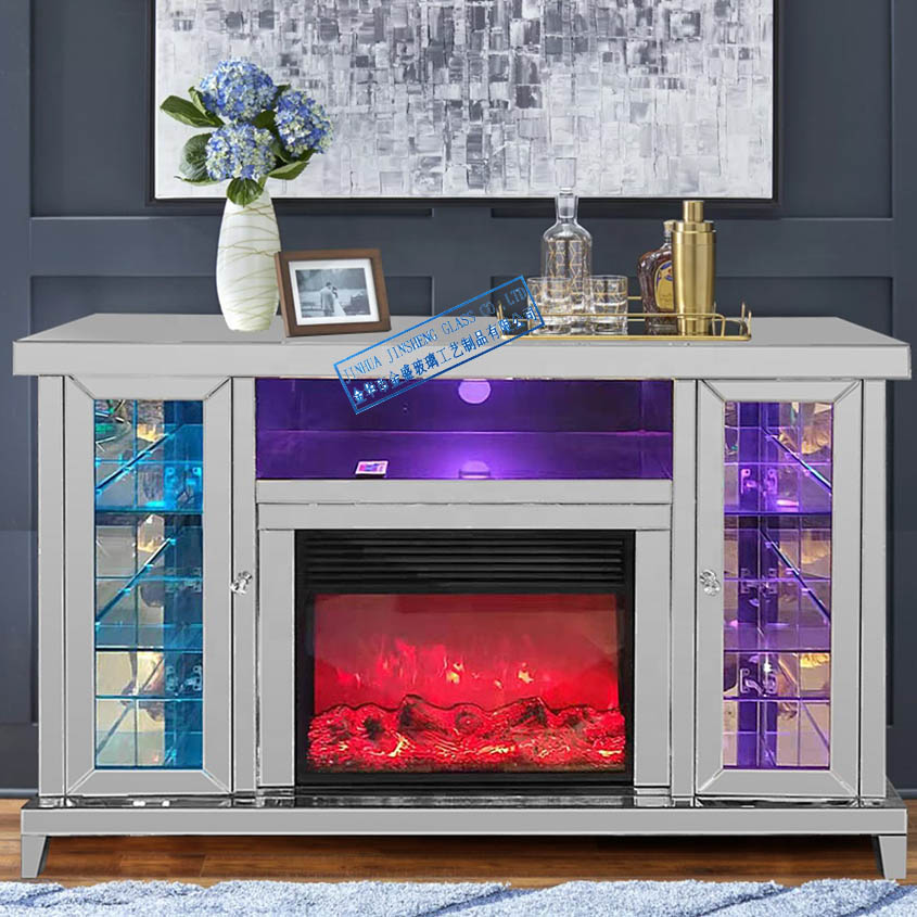 • Description: LED MIRRORED FIREPLACE WITH CRUSED DIAMOND TV STAND