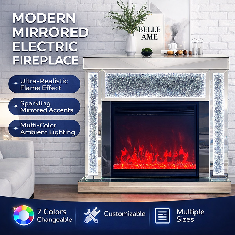 This product is suitable for furniture importers, wholesalers, distributors, online retailers and project buyers looking for stylish mirrored furniture with electric fireplace function.
