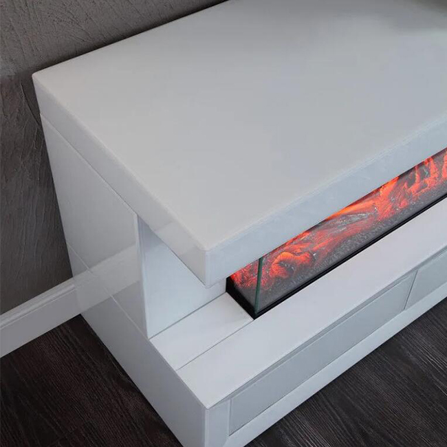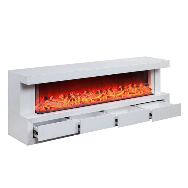 The JS-FP03 Mirrored Electric Fireplace features a luxurious super white mirrored exterior that provides a modern, clean aesthetic. This free-standing mantle includes an integrated electric fireplace with realistic 3D flame effects, making it a perfect functional decor piece for upscale living environments.