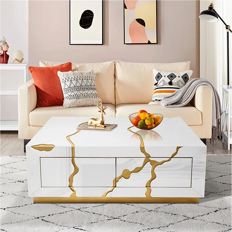 The Modern Super White Coffee Table is a centerpiece of contemporary design, featuring a high-quality super white glass surface embellished with a sophisticated marble texture. This combination offers the timeless look of marble with the sleek, durable finish of premium glass.